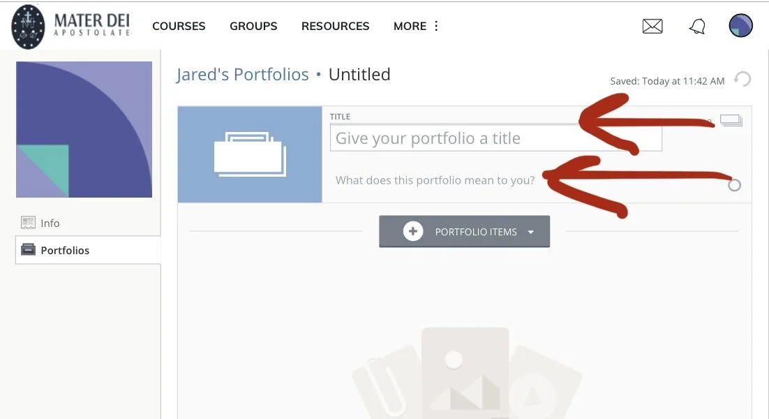 Step Five - Create a new portfolio for Kolbe Academy paperwork